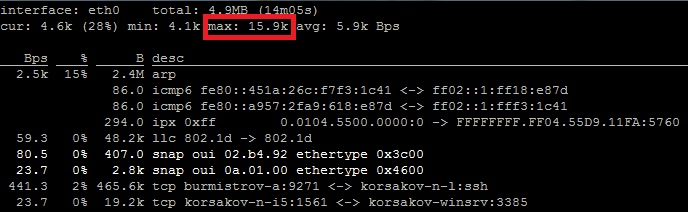 Нас интересует только один показатель, максимальное количество переданных байт.