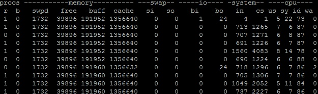 Запустите команду со следующими параметрами: vmstat -n 15 480 > StatResult.txt