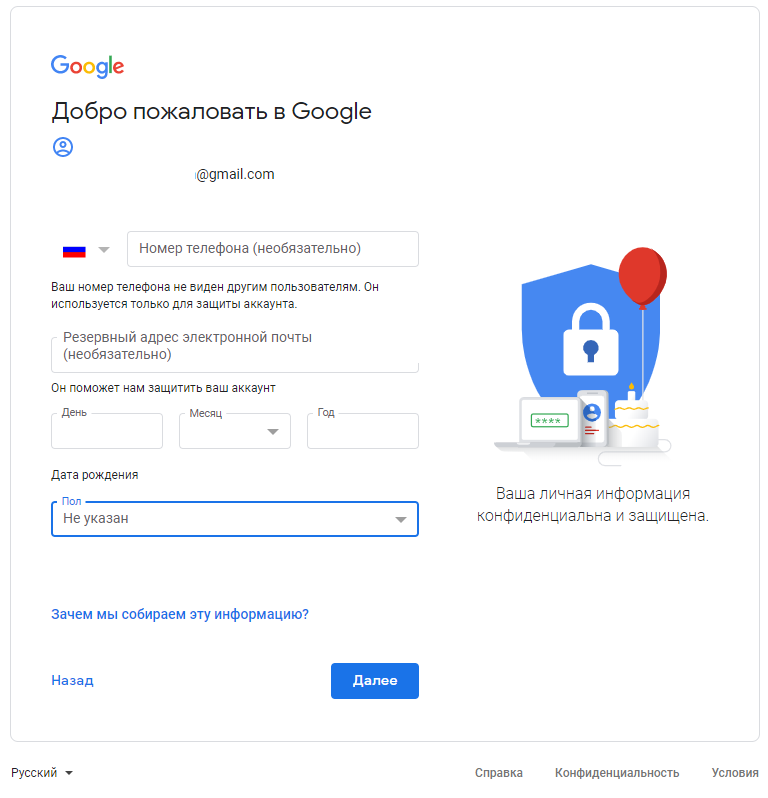 Обратите внимание, что при регистрации портал Google может запросить реальный номер контактного телефона, на который отправляется код подтверждения.