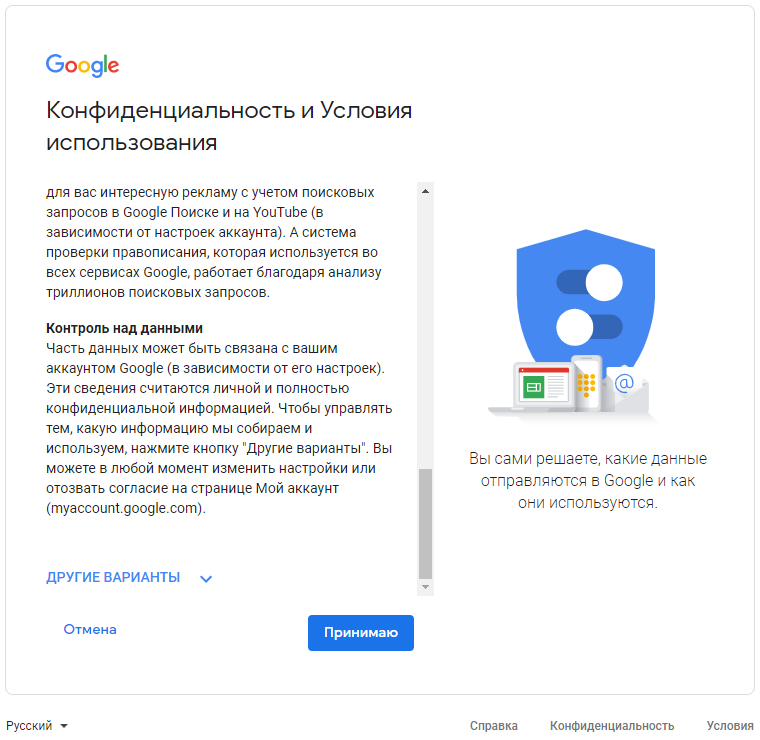 По факту заполнения всех полей необходимо согласиться с политикой конфиденциальности и перейти к следующему этапу настройки.