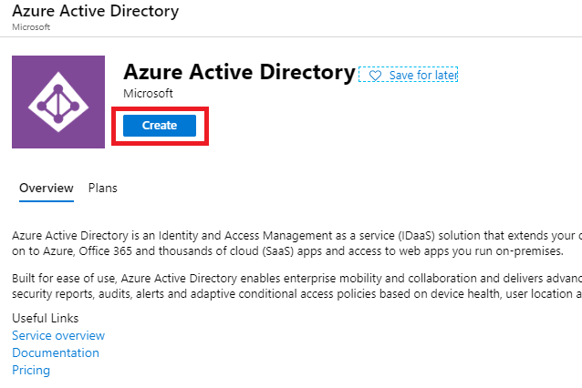 Обязательным условием для провайдера маркеров доступа Microsoft Azure AD является настроенный Azure Active Directory. Если в вашей учетной записи уже настроен Azure AD, данный раздел можно пропустить. Для настройки необходимо перейти на страницу портала https://portal.azure.com и нажать ссылку «Create a resource».