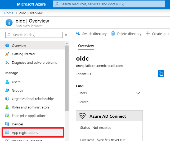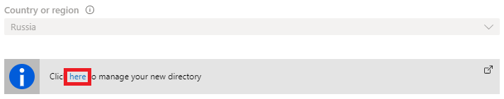 Для быстрого перехода к настройке Azure AD нажмите на ссылку «Here» информационного сообщения.