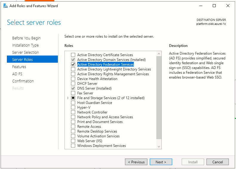 Для активации компонентов AD FS необходимо выполнить следующие шаги: