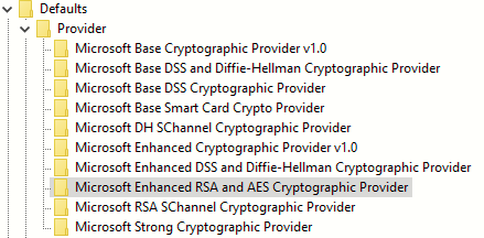 HKEY_LOCAL_MACHINE\SOFTWARE\Microsoft\Cryptography\Defaults\Provider
