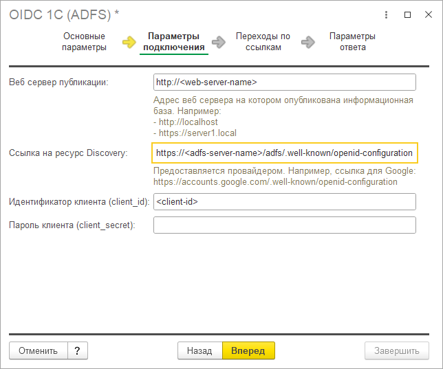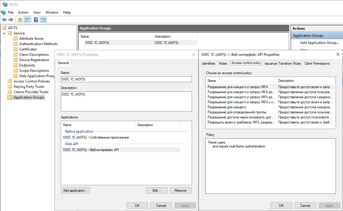 Настройка аутентификации OpenID connect с использованием функции AD FS для платформы 1С:Предприятия выполняется в несколько этапов: