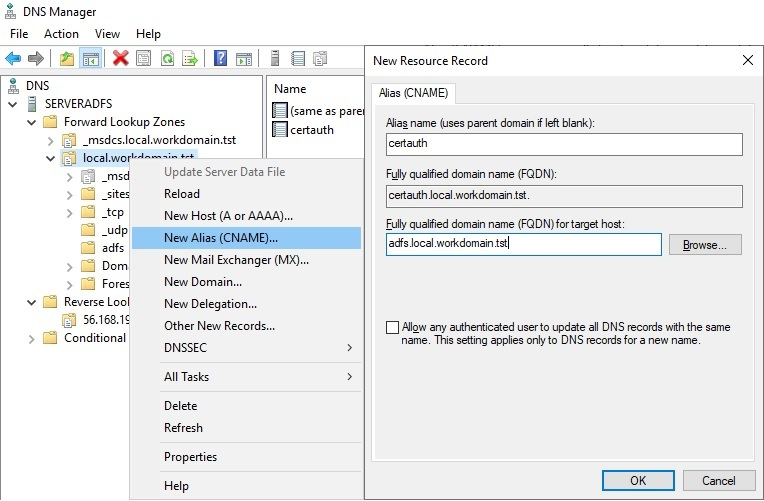 Центр сертификации в качестве примера установлен на том же сервере, что и сервер Active Directory.
