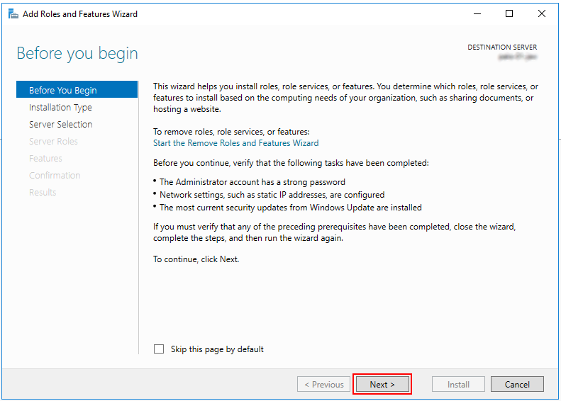 В ответ на нажатие откроется окно мастера добавления ролей и компонентов (Add Roles and Features).