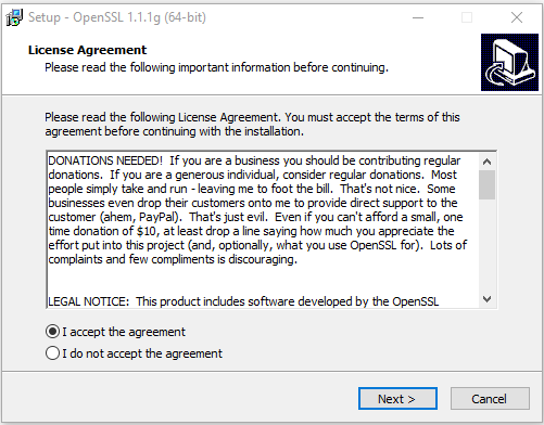 Дистрибутив OpenSSL установлен и теперь можно переходить к генерации сертификата.