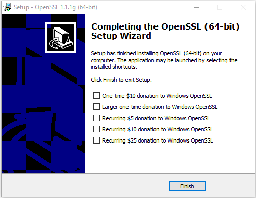 Финальный шаг – это страница пожертвований в пользу поддержки проекта. Если в планы не входит перечисление пожертвований, то необходимо снять все флажки и нажать кнопку Finish.