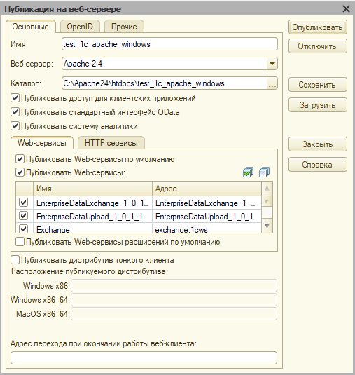 В отличие от IIS, веб-серверApaсhe доступен как для Windows, так и для Linux и позволяет настроить работу публикаций по шифрованному протоколу http.