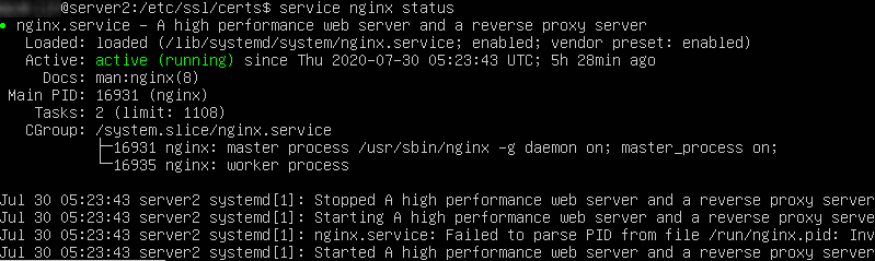 В ответ можно увидеть, что состояние службы active (running). Это значит, что веб-сервер работает в штатном режиме, и можно переходить к настройке трансляции запросов либо к генерации самоподписанного сертификата (если в этом есть необходимость).