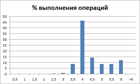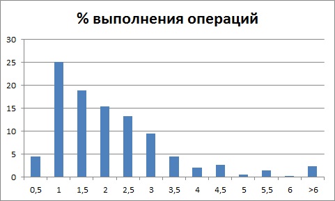 В результате по данным замеров времени получаем следующее распределение времени выполнения операции.