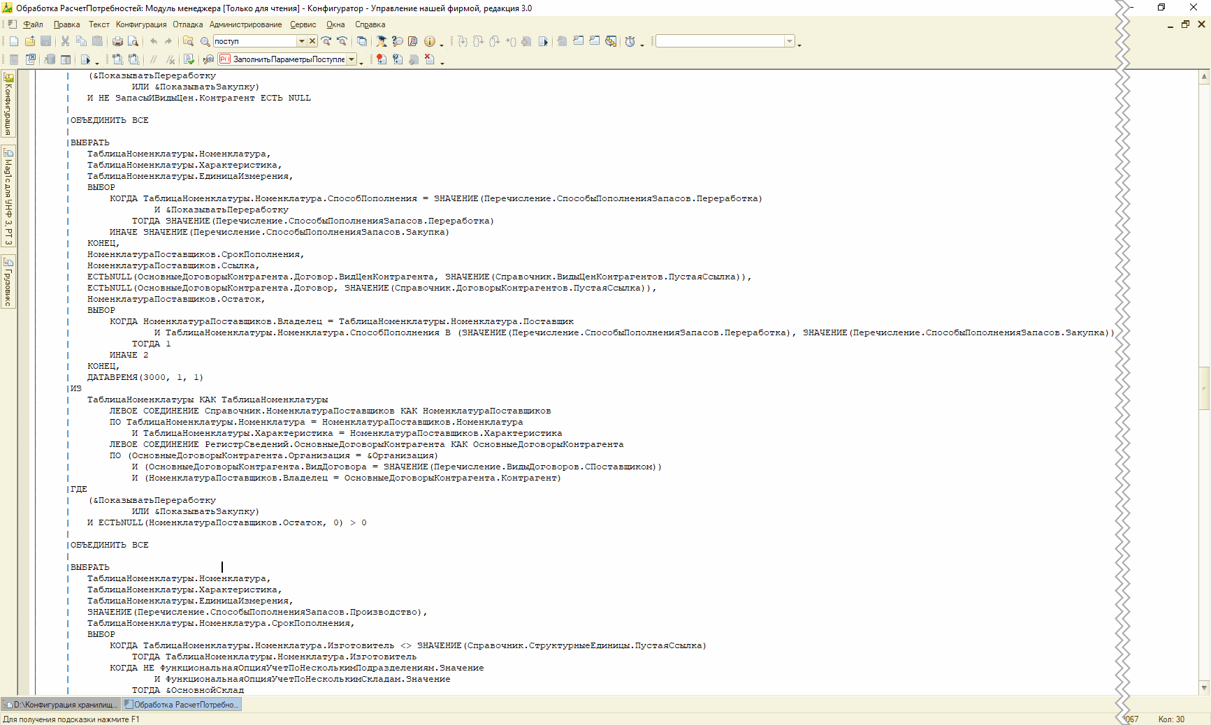 Рис. 11. Запрос получение остатка на складах поставщика