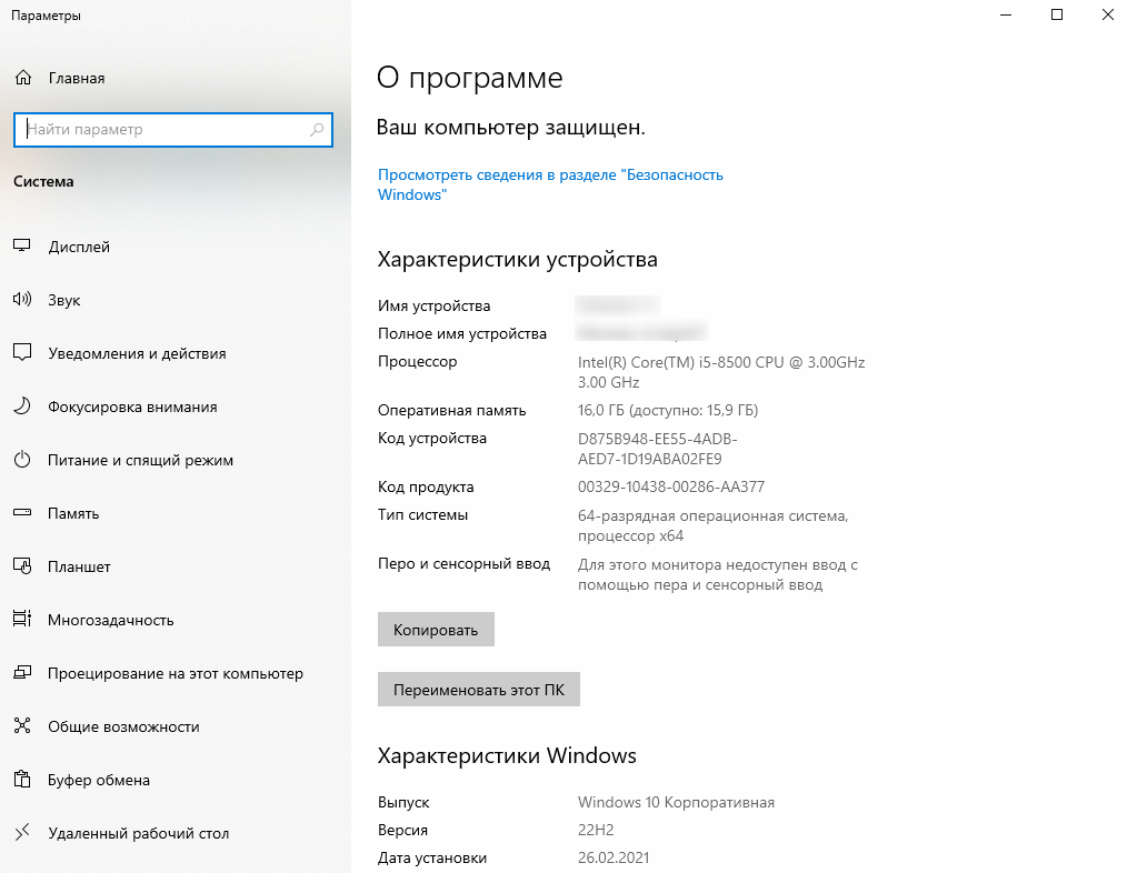 Рис. 9. Параметры оборудования