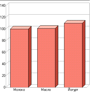Изменение базового значения применяется в тех случаях, когда разница между значениями в диаграмме намного меньше их абсолютных значений. В этом случае графическое представление становится не информативным. Вот пример диаграммы, содержащей значения 100, 101 и 110: