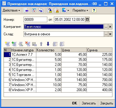 Поясним использование данного метода на примере списка приходных накладных.