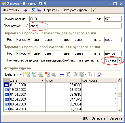 Пользователь1 попытался также отредактировать полное наименование валюты, однако сделать этого не смог: