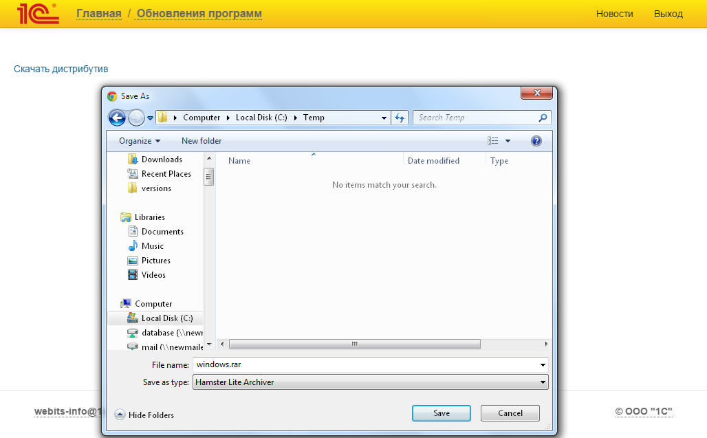 Для скачивания файла перейдите в раздел «Технологическая платформа 1С:Предприятия для Windows»: