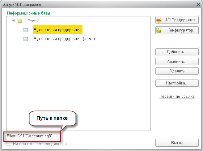 По кнопке "1С:Предприятие" можно начать работы с выбранной информационной базой на новой версии платформы.