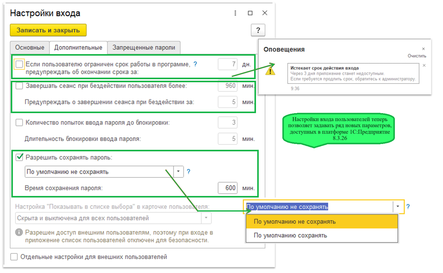 В некоторых случаях при работе в модели сервиса требуется централизованно, из сеанса с неустановленными разделителями, получать и обновлять данные безопасного хранилища во всех областях данных. Для того чтобы не входить в каждую область, в функциях ПрочитатьДанныеВладельцевИзБезопасногоХранилища и ПрочитатьДанныеИзБезопасногоХранилища общего модуля ОбщегоНазначения добавлен необязательный параметр ОбластьДанных.