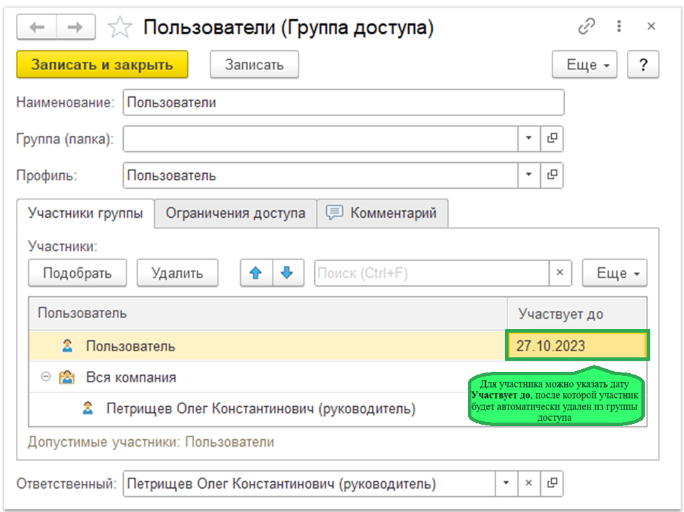 ДляОбъекта и ДляРегистра. Требуется взять их из роли ИзменениеУчастниковГруппДоступа и скопировать во все роли. Для массового обновления удобно использовать вкладку Шаблоны ограничений в форме Все ограничения доступа (включить отбор по наименованию шаблона, выделить все строки и использовать команду Изменить). Либо использовать отчет ПроверкаВнедренияБСП.epf в режиме исправления ошибок.ПриЗаполненииСписковСОграничениемДоступа общего модуля УправлениеДоступомПереопределяемый, в обработчик события ПослеЗаписиНаСервере формы объекта (все формы с основным реквизитом объекта) сделать вставку:// СтандартныеПодсистемы.УправлениеДоступом