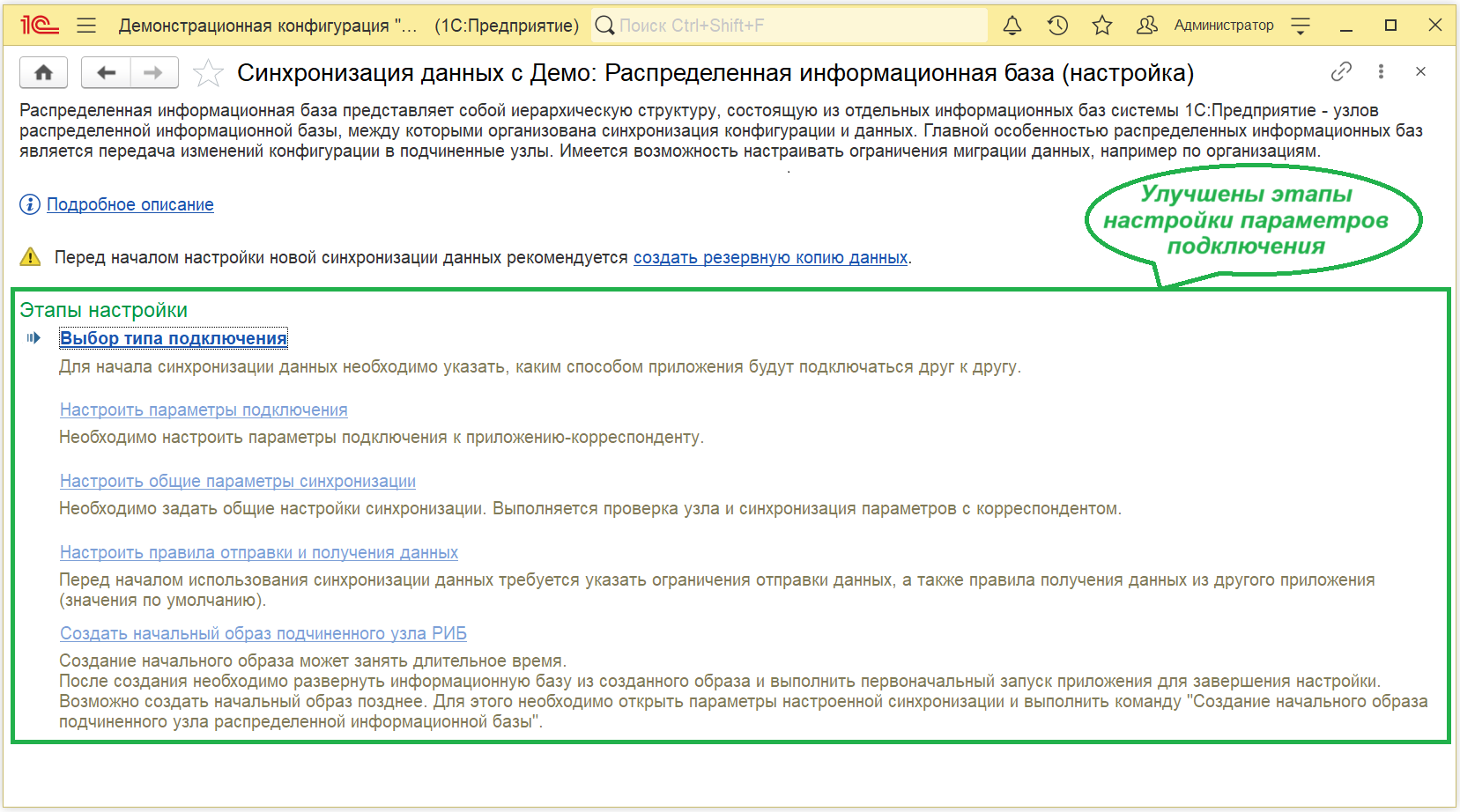 ПриОпределенииПризнакаОЗавершенииНастройкиСинхронизации Подробности см. в комментарии к ним.EnterpriseData добавлена возможность ограничивать список выгружаемых ссылочных данных, вместо выгрузки всех зарегистрированных на узле обмена изменений. Новая возможность доступна при использовании процедуры ОбменДаннымиСервер.ВыполнитьДействиеОбмена со специально подготовленными дополнительными параметрами. Пример использования: