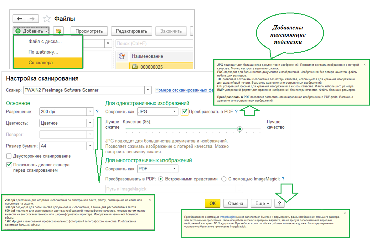 1С:Предприятие версии 8.3.13 появилась возможность проверять на клиенте некоторые свойства загружаемых файлов до их помещения на сервер. С целью поддержки новых возможностей для процедур ЗагрузитьФайл и ЗагрузитьФайлы общего модуля ФайловаяСистемаКлиент в состав свойств параметра ПараметрыЗагрузки добавлено свойство ДействиеПередНачаломПомещенияФайлов.ОписаниеПереданногоФайла в платформе 1С:Предприятие версии 8.3.13 в состав значения, возвращаемого асинхронной процедурой ФайловаяСистемаКлиент.ЗагрузитьФайлы, добавлены свойства ПолноеИмя и ИмяФайла.ИдентификаторОбъектаМетаданных и ИдентификаторыОбъектовМетаданных общего модуля ОбщегоНазначения добавлен необязательный параметр ВызыватьИсключение (значение по умолчанию Истина).СтрокаВДату программного интерфейса общего модуля СтроковыеФункцииКлиентСервер для преобразования дат со временем теперь поддерживает распознавание времени. Для этого добавлен второй необязательный параметр ЧастьДаты, который определяет возвращаемый вариант даты: дата, время, дата и время. По умолчанию, если этот параметр не задан, будет возвращена только дата.СтроковыеФункции и СтроковыеФункцииКлиент добавлена функция ФорматированнаяСтрока. Оформление текста выполняется HTML подобным языком разметки и позволяет менять цвет, шрифт, выводить картинки и создавать гиперссылки. Например, “Цена <span style=‘color: ПоясняющийТекст’>некорректная</span>”. Подробнее см. комментарий к функции.ОткрытьФормуОтправкиSMS общего модуля ВзаимодействияКлиент предусмотрена функция-конструктор ПараметрыФормыОтправкиSMS в этом же модуле.ОтключитьНебезопасноеСодержимое в общем модуле РаботаСПочтовымиСообщениями.